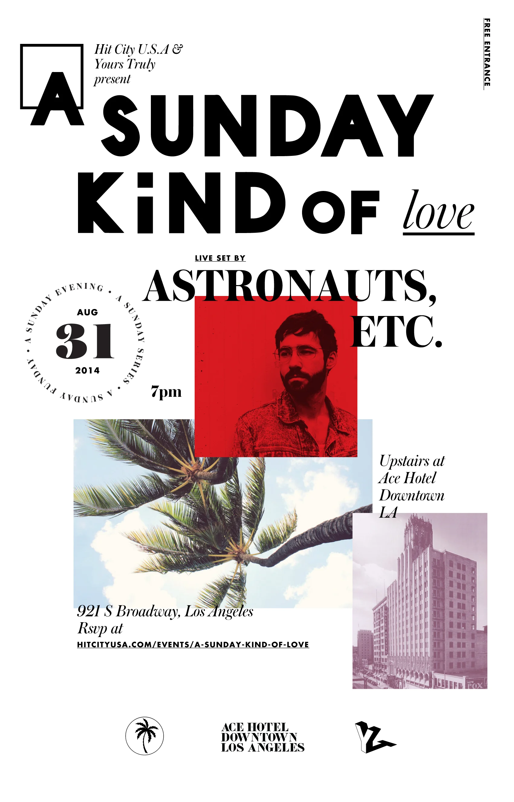 A Sunday Kind Of Love, a new monthly series from Hit City U.S.A. and Yours Truly, showcases independent music's best breaking artists set to the beautiful backdrop of Downtown Los Angeles's skyline at sunset.