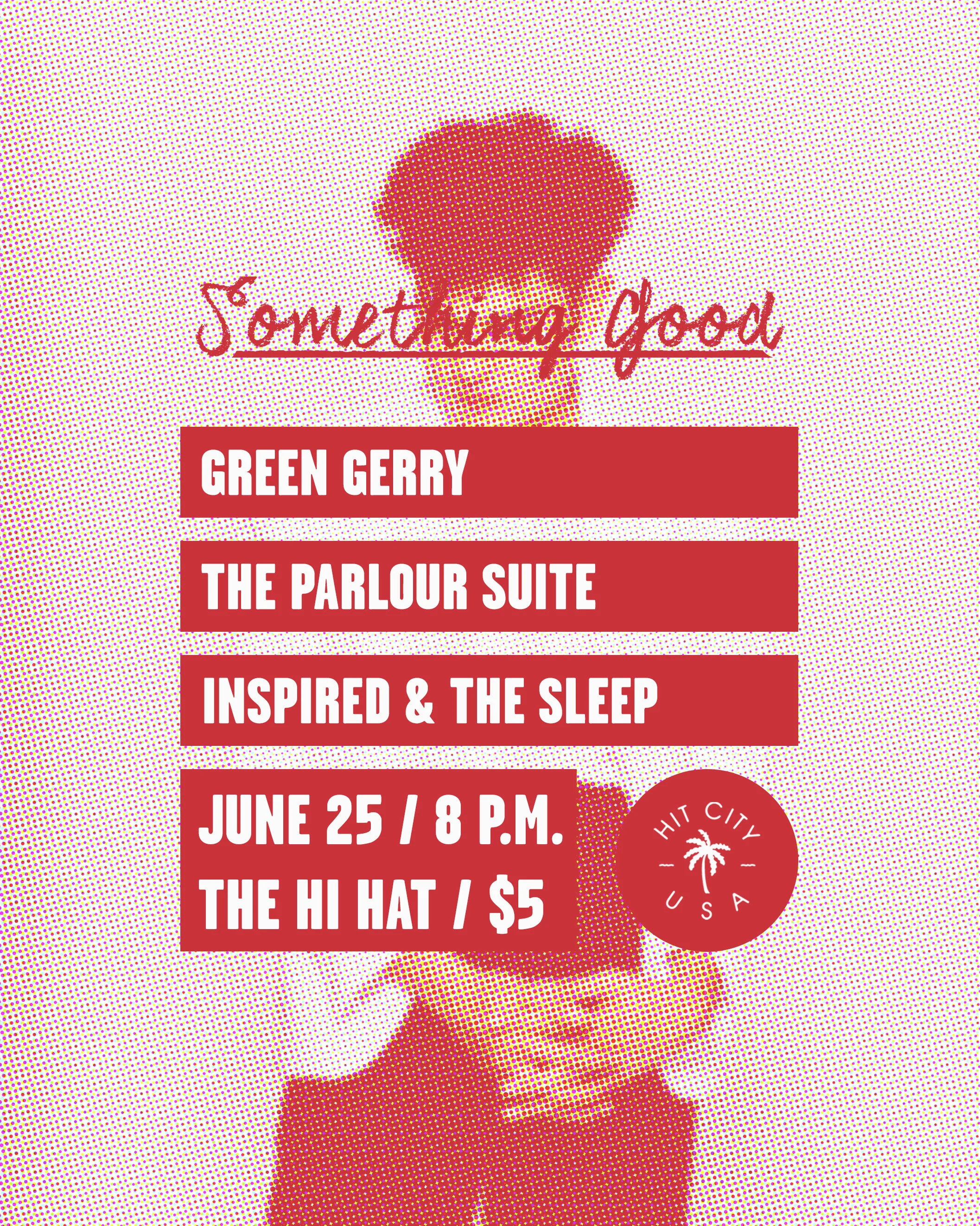 We're excited to bring Something Good back, now at The Hi Hat in Highland Park. June's event will feature sets from Green Gerry, The Parlour Suite and Inspired & The Sleep. Tickets are just $5, so come spend your Saturday night with us on the cheap and with some great music.